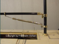 12 mm Rundmaterial eingearbeitet und mit Hilfe einer Aluminium Niete befestigt. Die beiden abnehmbaren Sailings sind in den gelöteten Messingröhrchen steckbar.