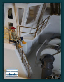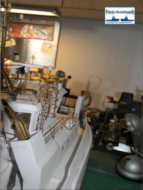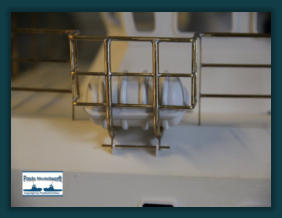 ...Über die Anfertigung von Reling und Relingstützen muss man nicht viel schreiben...Das die obere Reling immer 0,5 mm dicker ist, der Optik wegen, braucht man auch nichtzwingend zu erwähnen. Außer das es auch hier nützlich sein kann, angrenzende Lötteilemit Metallklemmen zu versehen, um das Abfallen der zu lötenden Teile zu vermeiden.