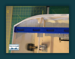 Mit Hilfe einer Feinkonturenlehre übertrug ich die innere Rumpfkontur auf 3 mm dicken Polystyrol. Danach wurden die beide Deckteile mittels Band-