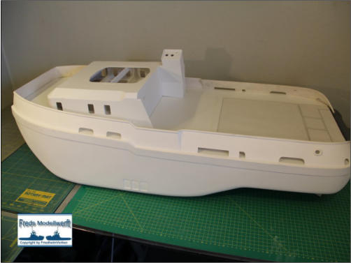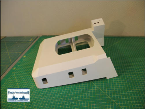 ich den Aufbau an das vordere Deckteil so angepasst, dass die Fensterausschnitte wie auf dem Plan verlaufen. Da ich es kaum erwarten kann die