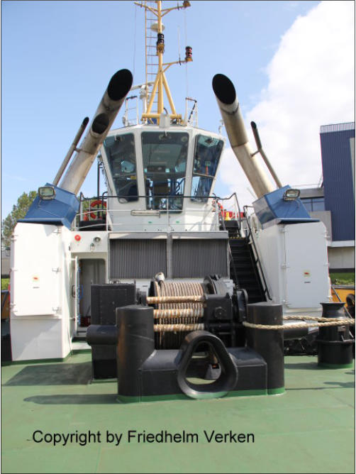 Länge:                   28,67 m Breite:                   10,43 m Tiefgang :               4,60 m Pfahlzug (Bug):        60,1 t Pfahlzug (Achtern):  56,2 t Antriebssystem: 2 xCaterpillar 3115 BHD TH/C 3678 bkW (4930 PS) bei 1600 U/ min Azimuth Strahlenruder 2x Rolls Royce US 205 Schraubendurchmesser : 2400 mm